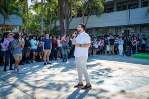 Durante su mensaje, el alcalde señaló que “Pa’ Que Veas Bien”, es una iniciativa que contribuye directamente al aprendizaje, al permitir que las y los estudiantes cuenten con las herramientas necesarias para su desarrollo académico.