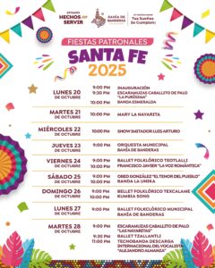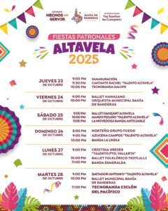 El Gobierno Municipal de Bahía de Banderas invita a la ciudadanía a disfrutar de las tradicionales Fiestas Patronales 2025, que se llevarán a cabo en las colonias de Santa Fe, Altavela y Emilio M. González, donde se vivirán días llenos de música, baile y tradiciones que fortalecen la identidad cultural del municipio.