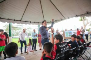 En un ambiente de entusiasmo y participación ciudadana, el presidente municipal Héctor Santana encabezó la entrega de la nueva cancha de futbol rápido en el fraccionamiento Jardines del Sol, reafirmando su compromiso con el deporte, la juventud y la recuperación de espacios públicos dignos para todas las familias de Bahía de Banderas.