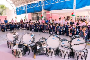 La titular de la asistencia social en la entidad expresó su orgullo por las y los estudiantes y destacó que este equipamiento permitirá la conformación de la banda de guerra, al tiempo que fortalecerá sus habilidades motrices, cognitivas y su disciplina escolar.