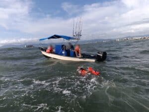Esta acción, se llevó a cabo después de que personal de la ENSAR Puerto Vallarta, recibió una llamada de auxilio, en virtud de encontrarse cinco personas a bordo de una embarcación de nombre “Samantha”, que derivado del mal tiempo, se encontraba con exceso de agua de mar y en riesgo de pantoquearse por el fuerte oleaje de los remanentes de la tormenta tropical Raymond.