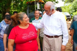 Durante su visita, también anunció la construcción de dos vados en el cruce del arroyo, así como la colocación de empedrado y luminarias, con el propósito de garantizar que niñas y niños del preescolar, al igual que todas y todos los habitantes, transiten de manera segura.