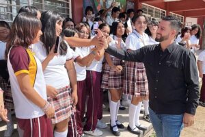 El alcalde Luis Munguía sostuvo una productiva reunión con inspectores y directores de secundarias de Puerto Vallarta, con el objetivo de mejorar la calidad de la educación en el municipio a través de proyectos importantes. Durante la visita a la Secundaria Foránea 78 “Antonio Caso Andrade” ubicada en la colonia Magisterio, los alumnos recibieron con entusiasmo al presidente, quien les anunció la construcción de un domo, la rehabilitación de la barda perimetral de su cancha y la instalación de un bebedero.