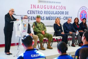 El gobernador Miguel Ángel Navarro Quintero, junto a su esposa, la presidenta del DIF Nayarit, Beatriz Estrada Martínez, inauguró el Centro Regulador de Urgencias Médicas (C.R.U.M.), un avance histórico para mejorar la respuesta ante emergencias en el estado.