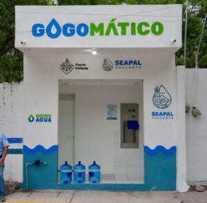 El director general de SEAPAL Vallarta, Carlos Ruiz, encabezó la reinauguración del Gogomático de la colonia Bugambilias, lo que representa que ya son 26 dispensadores en operación que benefician todos los días a miles de vallartenses con acceso a agua de calidad, purificada y gratuita.