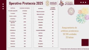 La Dirección de Protección Civil y Bomberos de Bahía de Banderas informó que, como resultado de los operativos preventivos y de decomiso de pirotecnia implementados, se registró saldo blanco, sin incidentes ni personas lesionadas relacionadas con el uso de estos artefactos.