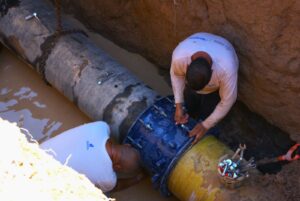 La intervención fue ejecutada por personal del área de Distribución de Agua Potable, quienes realizaron maniobras para la colocación de un tramo de tubo de 20 pulgadas de diámetro en hierro dúctil, por el que circulan alrededor de 130 litros por segundo en promedio.