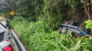 Se conoció que un camión de carga tipo Tráiler, color azul, cargado de tubos de caucho, circulaba a exceso de velocidad en sentido hacia Puerto Vallarta, cuando su operador pierde el control y se sale de la carpeta asfáltica, para caer a un barranco de más de 10 mts de profundidad a la altura del kilómetro citado, quedando prensado.