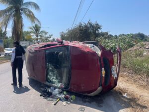 Una aparatosa volcadura se registra en el cruce de avenida México y Los poetas, esto en el municipio de Puerto Vallarta, a decir de las autoridades el exceso de velocidad y la falta de pericia generó el accidente que dejó un vehículo sobre uno de sus costados y otro con severos daños materiales, por fortuna no se reportaron personas heridas de gravedad, solo importantes daños materiales y severas afectaciones a la circulación.